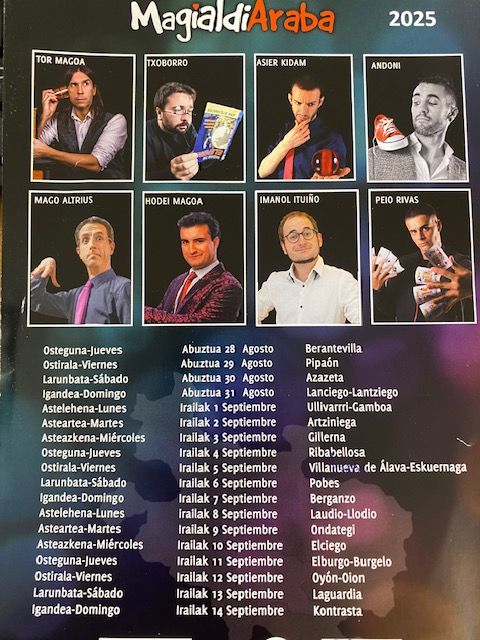 Emocionado de poder anunciaros que, este año, volveré a formar parte de MAGIALDIARABA. Este ciclo, que crece edición tras edición bajo el sello del festival MAGIALDIA, se encargará de llevar la magia por los pueblos de Álava, con talleres y actuaciones que se sucederán desde el 28 de agosto hasta el 14 de septiembre.